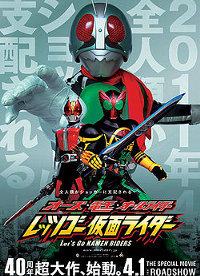 Tempo di celebrazioni per l’industria dello Spettacolo giapponese: il 3 Aprile di quest’anno ricorrono i 40 anni dal debutto in televisione, sull’ex-emittente NET TV (ora TV Asahi), di Kamen Rider, vero padre fondatore del genere degli “eroi mascherati” e che ha dato il via a una longeva e fortunata serie di serie TV e film. Per l’occasione è uscito nei cinema un nuovo film celebrativo OOO, Den-O, All Riders: Let's Go Kamen Riders che si è immediatamente piazzato in testa alle classifiche dei primi due week-end di Aprile (non conquista il primo posto assoluto negli incassi del periodo per una mera questione temporale).
