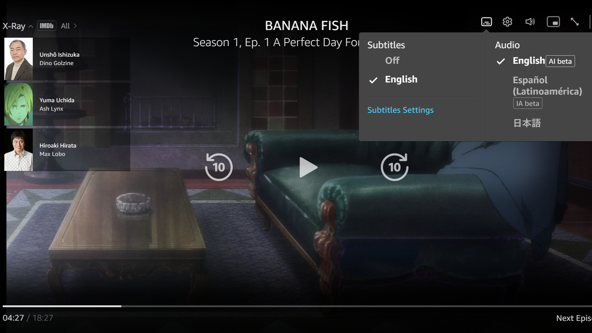 Al momento della pubblicazione della notizia, rimangono ancora disponibili su Prime Video i doppiaggi in spagnolo generati con AI per Banana Fish e Vinland Saga, oltre a un doppiaggio inglese artificiale per la serie meno conosciuta "pet". Non è escluso che anche questi vengano presto rimossi.