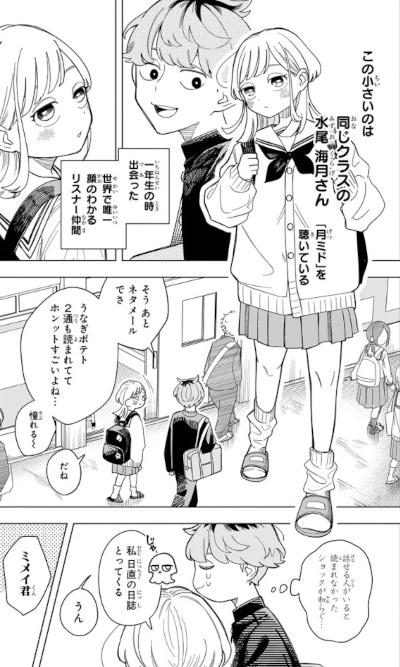 Nei suoi giorni a scuola condivide la passione per quel programma radiofonico con la misteriosa Kurage Mizuo, compagna di classe. La giovane è convinta di come le persone capaci di far ridere gli altri siano le migliori. Un giorno le rivela di essere lei stessa quel "Eel Potato" tanto odiato da Mimei e di potersi innamorare solo di chi sia più divertente di lei. Per il ragazzo dimostrare di essere più divertente della sua rivale diventa improvvisamente molto importante.
