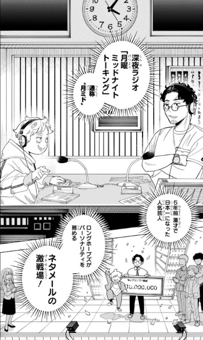 Trama: Lo studente del secondo anno delle superiori Mimei Fukimori, presidente del consiglio studentesco, è un aspirante comico. Tenta, senza successo, di farsi notare a un programma radiofonico notturno, il "mon mind", condotto da un celebre duo comico. Per il suo carattere estremamente competitivo non si vuole arrendere, ma si trova ad affrontare un temibile rivale, chiamato "Eel Potato".