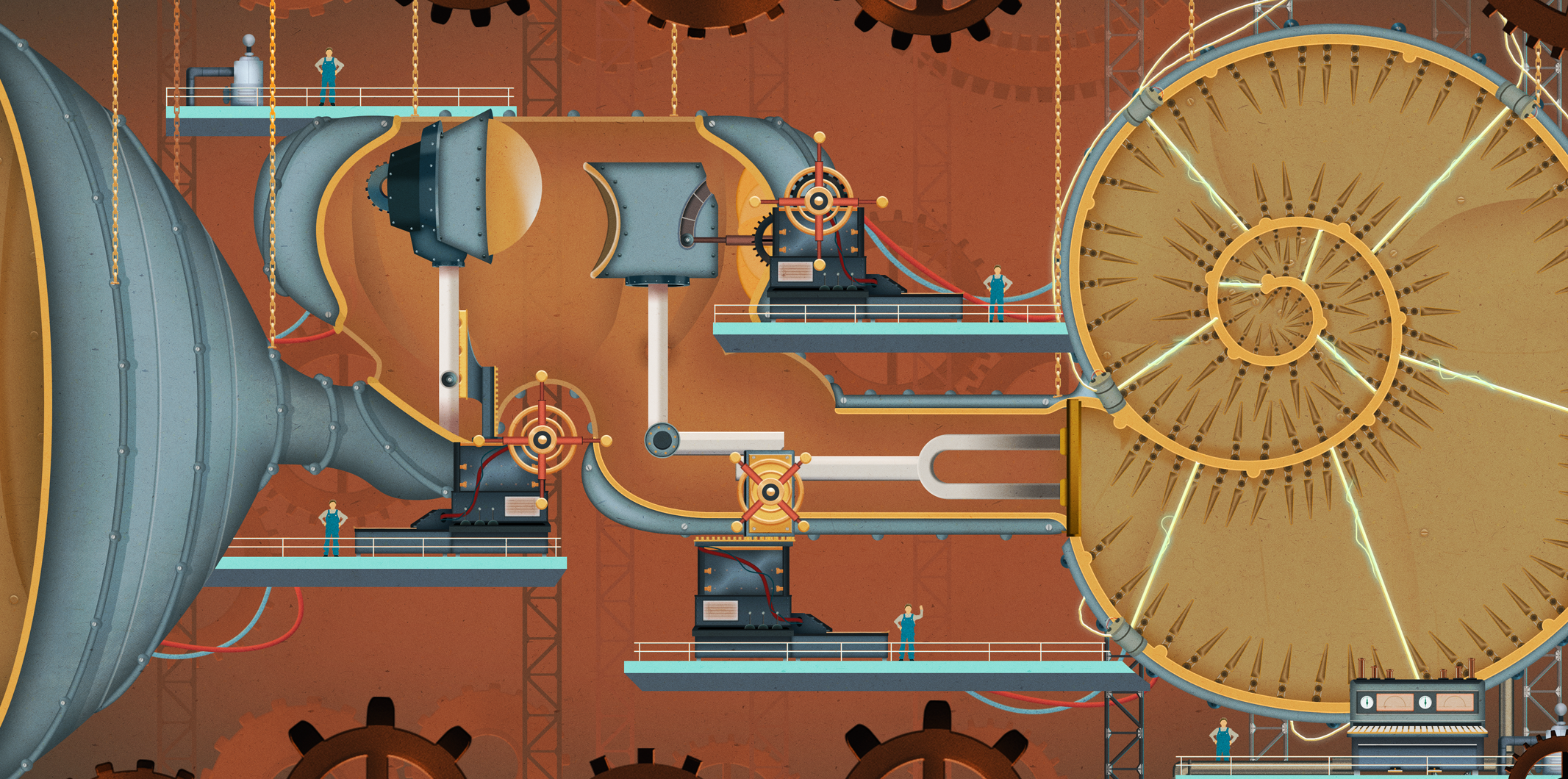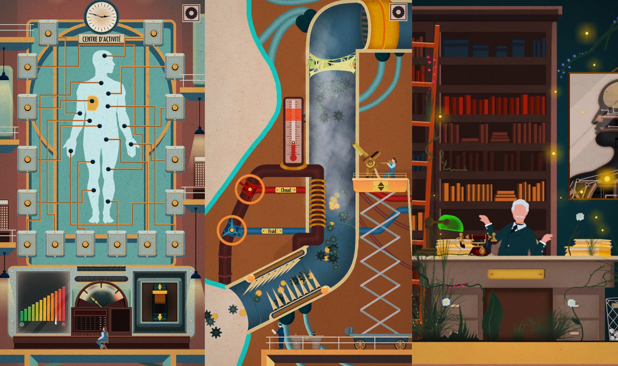 Homo Machina è un delizioso puzzle game che ti fa sentire un po’ come un direttore d’orchestra… ma invece di strumenti, coordini ingranaggi, leve e minuscoli operai meccanici all’interno del corpo umano. Il gioco si ispira alle famose illustrazioni del medico e infografico tedesco Fritz Kahn, che immaginava il corpo come una gigantesca fabbrica retrò, piena di tubi e lavoratori senza volto intenti a far funzionare ogni organo come se fosse una catena di montaggio anni ’20.