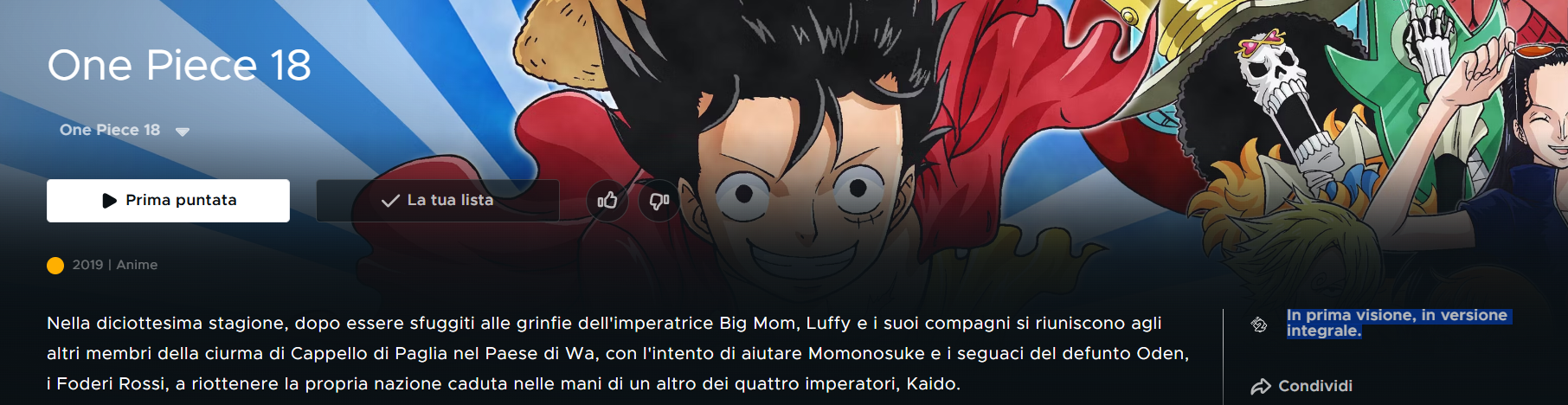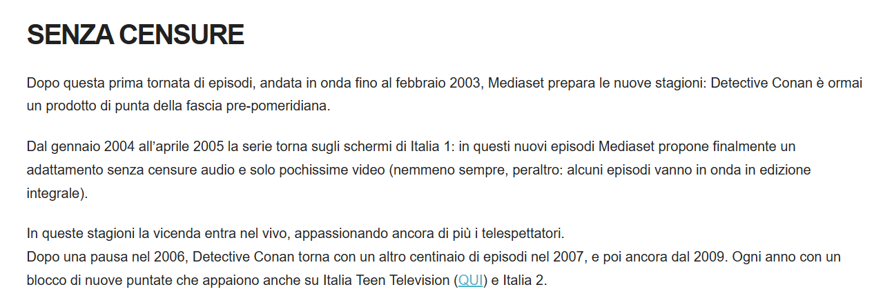 Comunque è una operazione totalmente affine a quella di OP e, quindi, mi attendo che con la collaborazione di Mediaset quando finiranno i 700 e passa episodi doppiati andranno avanti e poco a poco recupereranno tutto. Ci vuole pazienza e dobbiamo ricordarci che fino a un anno fa l'anime di Conan in Italia era un miraggio