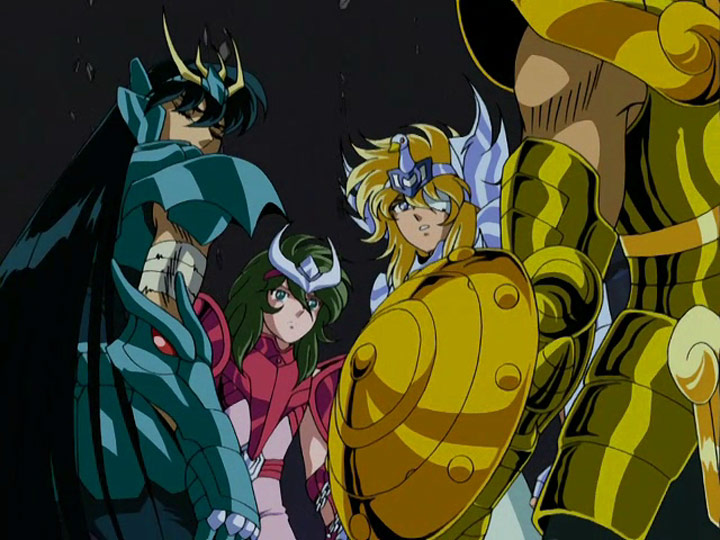 VEDO CHE E’ FATICA INUTILE CERCARE DI DISSUADERVI. / (fc) DOBBIAMO RISVEGLIARE L’OTTAVO SENSO. / (ant. sm) (cll) VOI SIETE GIUNTI FINO A QUESTA SOGLIA COMPIENDO AZIONI E GESTA CHE HANNO DEL MIRACOLOSO. / (ic) INDOSSATE LE ARMATURE RINATE COL SANGUE DI ATHENA. / VOI POTETE FARCELA. / ANDIAMO! / CAVALIERI DI ATHENA, CAVALIERI DELLA SPERANZA!