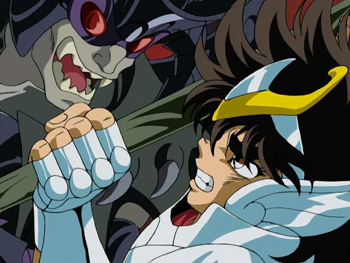 UN CAVALIERE DI ATHENA CI HA GIA’ PRECEDUTI. DITEMI CHE PEGASUS E’ ANCORA VIVO, VI PREGO! (è vero che Andromeda si presenta in Hades un po' più maturo, ma in questo primo episodio non ancora, tanto che per la sua ingenuità rischia la vita insieme a Pegasus contro Caron. Quindi manterrei la battuta in linea con l'Andromeda "classico")