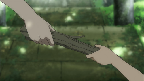 * Hanauta Nagaruru: mentre sta svolgendo il suo turno di pulizia, Shima sente il suono di una chitarra provenire da un vecchio edificio scolastico dismesso; il ragazzo è tentato di andare a vedere chi sta suonando, nonostante sia severamente proibito agli studenti di accedere nello stabile…