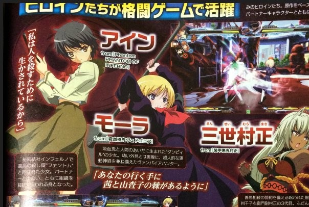 Giocabili: Ein (Phantom: Phantom of Inferno), Mora (Vampirdzhija Vjedogonia), Al Azif (Demonbane), Ruili (Kikokugai: The Cyber Slayer), Saya (Saya no Uta), Anna (Gekkō no Carnevale), Ignis (Jingai Makyō), Sansei Muramasa (Full Metal Daemon Muramasa), dopo update anche Echika (Tokyo Necro UPD), Saber (Fate/stay night), Ouka (OKStyle mascot).