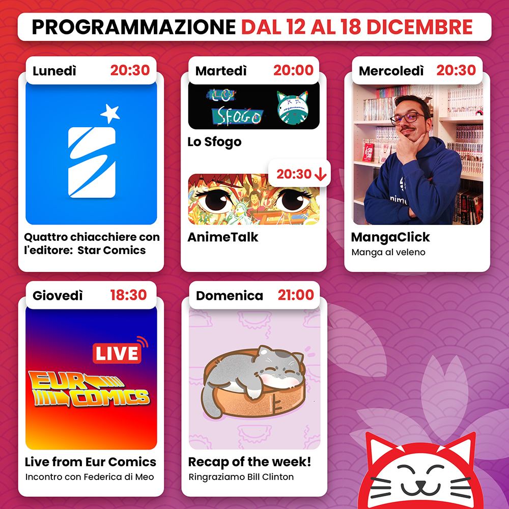 Ecco a voi il programma della nostra settimana su Twitch, osservate subito per bene il calendario: l'articolo lo troverete sempre a lato a destra per tutta la settimana.
