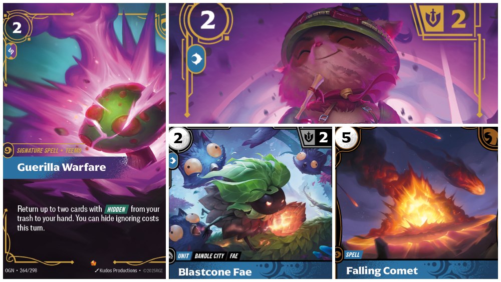 Proprio come in Final Fantasy TCG, Magic o Lorcana, anche in Riftbound il Mana è diviso in diverse categorie che rappresentano archetipi specifici sotto i quali si uniscono filosofie ben determinate. Siamo sinceri, alcune categorie ricordano le distinzioni di colore di Magic ma il twist è sufficientemente diverso da mettere a proprio agio i veterani senza causare uno stucchevole senso di déjà-vu. A rendere possibile questa magia troviamo delle "definizioni" che alle volte comprendono i concetti classici però ampliandoli o mischiandone alcuni. Per fare alcuni esempi, il Rosso di Riftbound è legato al concetto di Furia ed è caratterizzato da carte con Accelerate (rapidità) e con magie che tendono a fare danno numerico più che rimozione diretta. Praticamente è la copia carbone del Fuoco di Magic, ma più orientato al combattimento, lasciandolo un po' sprovvisto in opzioni per gestire problemi fuori dai campi di battaglia.