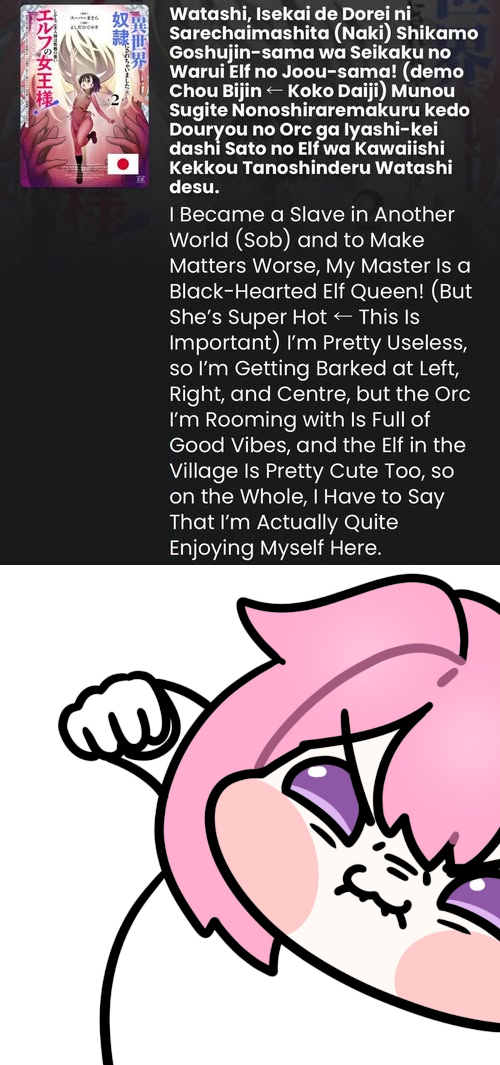 @Ironic74 Ho notato che il manga Kami ni Tensei Shita Shounen ga Mofumofu to Isekai wo Tabishimasu è segnato come "in corso". In realtà è concluso con 3 volumi e 15 capitoli.