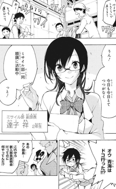 Trama: Sachi Tatsuko è una ragazza non molto abile nello studio che si è trasformata in un genio riuscendo a frequentare una scuola prestigiosa per stare vicino al ragazzo che le piace, Shouta Oumi. Un giorno il ragazzo decide di creare un club con il compito di costruire dei missili, in quell'occasione la ragazza accetta di diventarne vicepresidente. In seguito si presenta una ragazza di nome Midori Onda, che per aspetto ricorda quello di una bambina, e Shouta trascorre tutto il suo tempo con lei evitando i doveri del club. Sachi, nonostante i suoi super poteri, non sa come gestire il tutto.